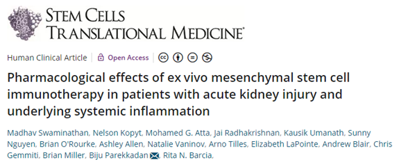 2021年,美國研究團隊在《干細胞轉化醫學(xué)》上發(fā)布了一項Ib期臨床試驗結果,初步證實(shí)新型離體使用的間充質(zhì)干細胞產(chǎn)品(SBI-101)在嚴重急性腎損傷患者中的安全性和有效性。