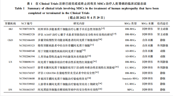 主要參考資料: 楊蘊釗,石美涵,周誠,等. 間充質(zhì)干細胞在腎臟疾病治療中的應用進(jìn)展[J]. 基礎醫學(xué)與臨床,2023,43(1):30-37. DOI:10.16352/j.issn.1001-6325.2023.01.0030.