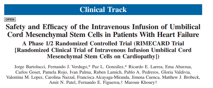 結果表明心力衰竭和射血分數降低的患者靜脈輸注臍帶間充質(zhì)干細胞是安全的,且可觀(guān)察到接受臍帶間充質(zhì)干細胞治療心力衰竭患者在左心室功能、功能狀態(tài)和生活質(zhì)量的改善。