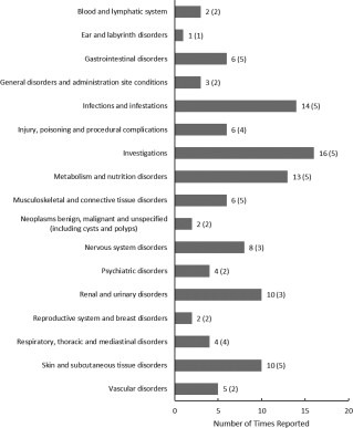 條形表示報告的AE總數。