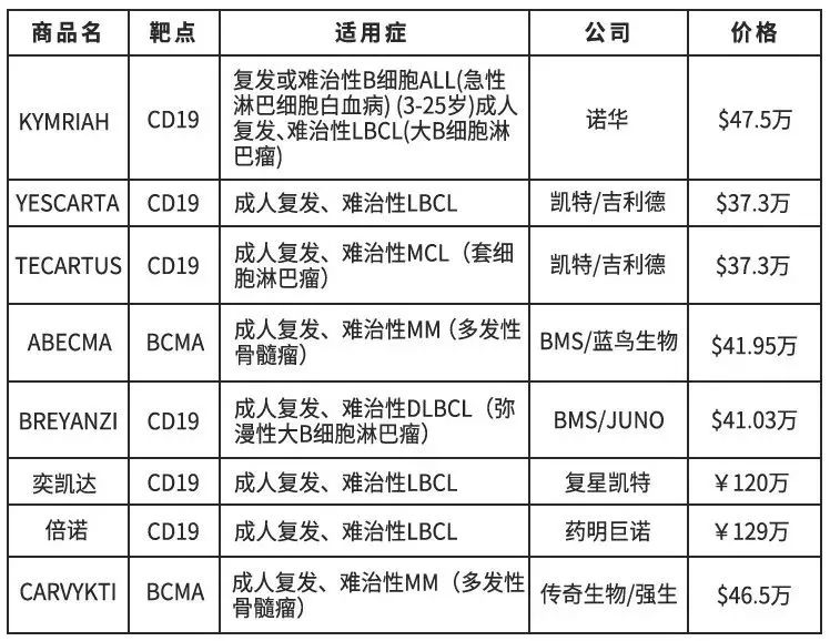 國內已批準復星凱特、藥明巨諾2款靶向于CD19的CAR-T療法、而信達生物/馴鹿醫療的BCMACAR-T療法正在申請上市,此外美國已批準傳奇生物開(kāi)發(fā)的BCMACAR-T。