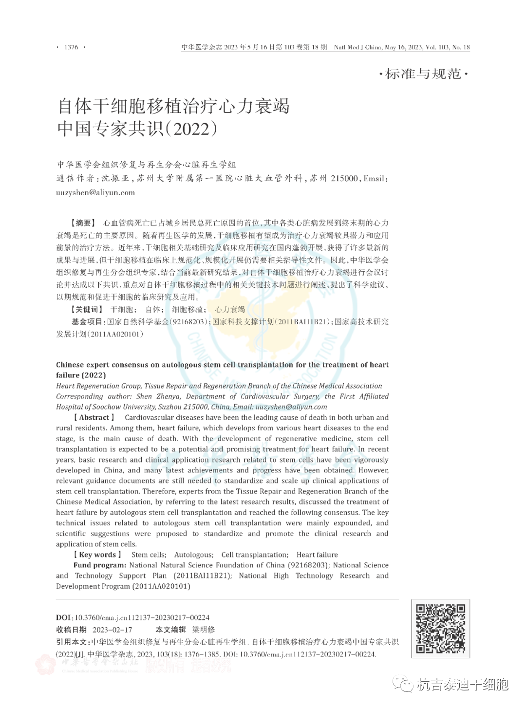 近日,《中華醫學(xué)雜志》2023年第18期發(fā)表了中華醫學(xué)會(huì )組織修復與再生分會(huì )組織專(zhuān)家撰寫(xiě)的《自體干細胞移植治療心力衰竭中國專(zhuān)家共識(2022)》,重點(diǎn)對自體干細胞移植過(guò)程中的相關(guān)關(guān)鍵技術(shù)問(wèn)題進(jìn)行了闡述,并對自體干細胞移植治療心血管病的未來(lái)研究方向提出了建議,以期規范和促進(jìn)干細胞的臨床研究及應用。