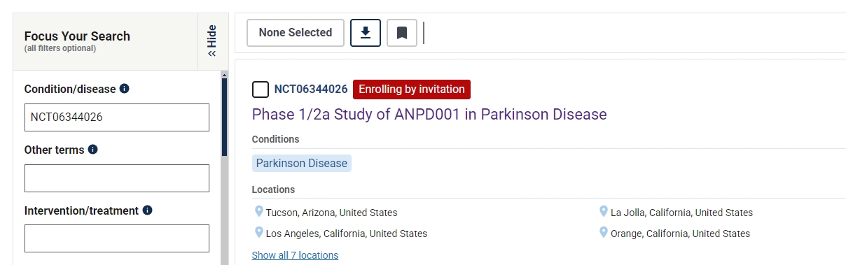 去年啟動(dòng)的開(kāi)放標簽ASPIRO試驗 (NCT06344026)旨在測試ANPD001在50-70歲患者中以遞增劑量注射一年后的安全性和耐受性。研究人員還將觀(guān)察一年內運動(dòng)癥狀得到控制時(shí)的變化。
