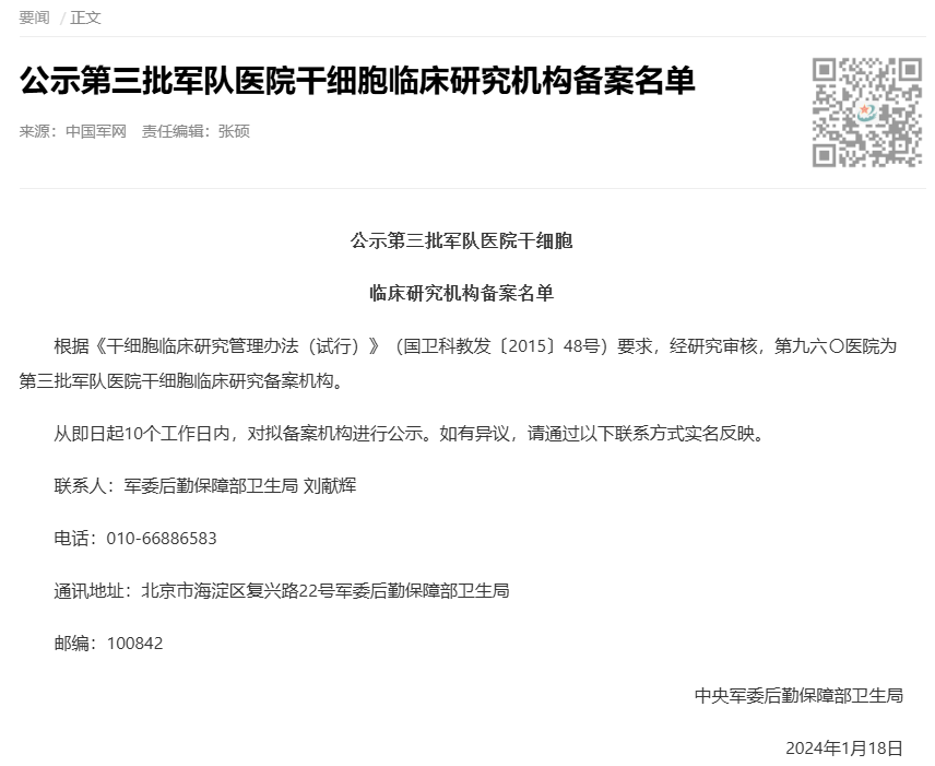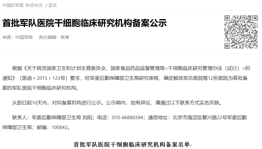 近日傳來(lái)好消息,根據《干細胞臨床研究管理辦法(試行)》(國衛科教發(fā)〔2015〕48號)要求,經(jīng)過(guò)中央軍委后勤保障部衛生局的嚴格審核,全國有23家軍隊醫院獲得了干細胞臨床研究的備案資格。這標志著(zhù)中國在干細胞研究和應用方面邁出了堅實(shí)的一步,同時(shí)也彰顯了軍隊醫療機構在此領(lǐng)域的領(lǐng)先地位。