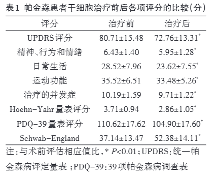 神經(jīng)干細胞移植治療帕金森病,最長(cháng)隨訪(fǎng)時(shí)間49個(gè)月,帕金森病評定量表評分改善,生活質(zhì)量提高