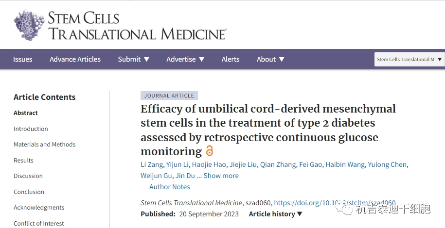 2022年5月3日,由中國人民解放軍第一醫學(xué)中心(原301醫院)內分泌科母義明教授和生物治療中心韓衛東教授領(lǐng)銜的一項單中心、隨機、雙盲對照間充質(zhì)干細胞治療2型糖尿病II期臨床研究結果公布,發(fā)表在《Stem Cells Research&Therapy》雜志上。