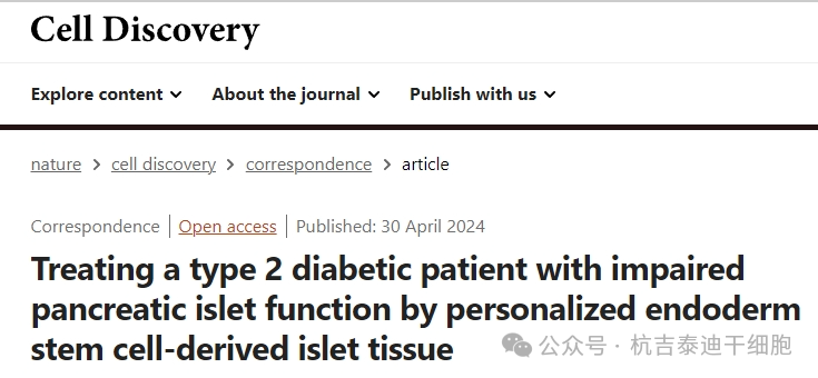《自然》雜志報道的這項開(kāi)創(chuàng )性手術(shù)標志著(zhù)糖尿病治療向前邁出了一大步。移植外科醫生詹姆斯·夏皮羅表示,手術(shù)徹底逆轉了她的糖尿病,此前她需要大量胰島素治療。2024年4月30日,《自然》科學(xué)雜志發(fā)表了一篇“利用個(gè)性化內胚層干細胞來(lái)源的胰島組織治療胰腺胰島功能受損的2型糖尿病患者”的文章,該文章表明中國科學(xué)院上海生物化學(xué)與細胞生物學(xué)研究所在研究治療2型糖尿病方面也取得了類(lèi)似的成功。
