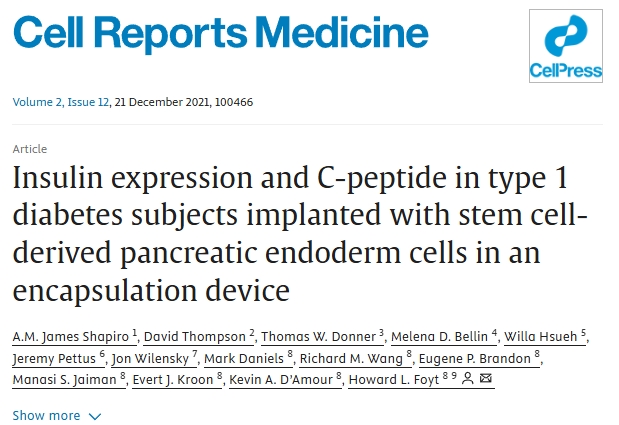 該試驗評估了在腹部前直肌鞘下自體移植化學(xué)誘導的多能干細胞來(lái)源的胰島 (CiPSC 胰島) 治療1型糖尿病的可行性。患者在移植后75天開(kāi)始實(shí)現持續的胰島素依賴(lài)?;颊叩难沁_到目標范圍時(shí)間從基線(xiàn)值的43.18%增加到移植后第4個(gè)月的96.21%,同時(shí)糖化血紅蛋白 (長(cháng)期全身血糖水平處于非糖尿病水平的指標) 下降。