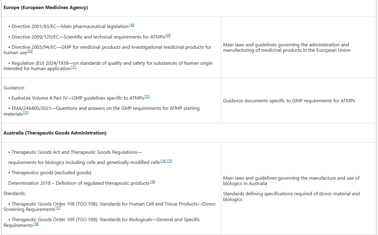 監管機構正在采取措施,改善創(chuàng )新細胞治療產(chǎn)品的早期獲取,這些產(chǎn)品可能會(huì )為患有β細胞缺陷的糖尿病患者帶來(lái)變革。為確保安全性和一致性,所有臨床級人類(lèi)干細胞衍生產(chǎn)品的生產(chǎn)都要遵守針對細胞醫藥產(chǎn)品的一系列區域特定立法和指南,包括與良好生產(chǎn)規范 (GMP) 和質(zhì)量管理體系相關(guān)的立法和指南(表1)。