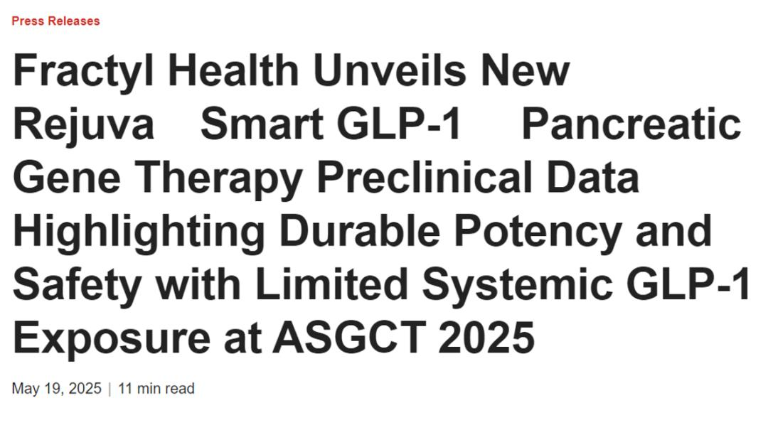 2025年5月19日,Fractyl Health,Inc公司宣布,其針對2型糖尿病和肥胖患者研發(fā)的開(kāi)創(chuàng )性基因療法取得了里程碑式進(jìn)展,單次劑量即可實(shí)現持久療效和安全性,且全身性的胰高血糖素樣肽-1(GLP-1)暴露有限。[8]