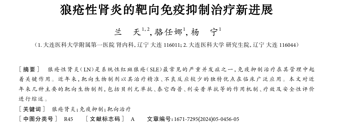 2024年,大連醫科大學(xué)附屬第一醫院發(fā)表了一項關(guān)于狼瘡性腎炎的靶向免疫抑制治療新進(jìn)展的研究成果。研究指出,狼瘡性腎炎(LN)治療正從傳統序貫治療轉向聯(lián)合治療和靶向治療。[1]