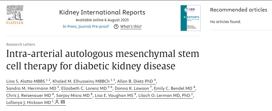 近日,美國梅奧診所在國際權威期刊雜志《腎臟國際報告》上發(fā)表了一項關(guān)于“動(dòng)脈內自體間充質(zhì)干細胞治療糖尿病腎病”臨床研究的文章[1]。