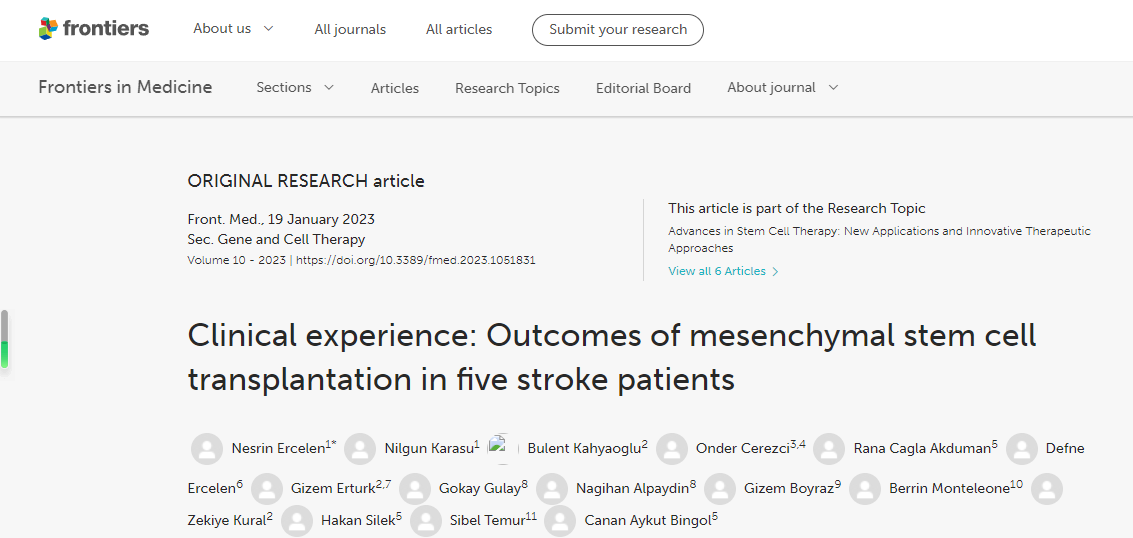 在第三項原創(chuàng )研究中,Ercelen等人介紹了他們使用異體臍帶間充質(zhì)干細胞治療中風(fēng)患者的經(jīng)驗。