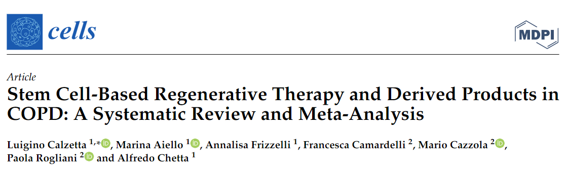 2022年5日,《細胞》雜志上發(fā)布了一篇標題為“基于干細胞的再生療法及其衍生產(chǎn)品在慢性阻塞性肺病 (COPD) 中的系統評價(jià)和薈萃分析”的研究。這項研究綜合評估了11個(gè)相關(guān)研究,并匯集了總計371名COPD患者的數據進(jìn)行分析。