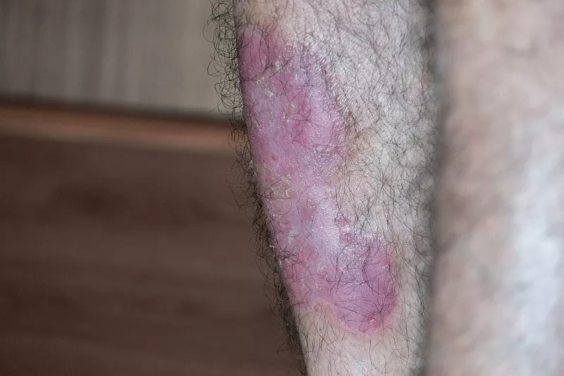 斑塊型銀屑病是最常見(jiàn)的銀屑病變體,約占所有銀屑病病例的85%至90%。這種形式的牛皮癬通常表現為凸起的紅色鱗狀斑塊,上面覆蓋著(zhù)白色鱗片。這些病變/斑塊最常見(jiàn)于頭皮、肘部和膝蓋的伸肌表面、軀干和臀部,盡管它可以出現在任何位置。銀屑病與其他幾種嚴重的健康狀況有關(guān),例如糖尿病、心血管疾病、淋巴瘤和抑郁癥。