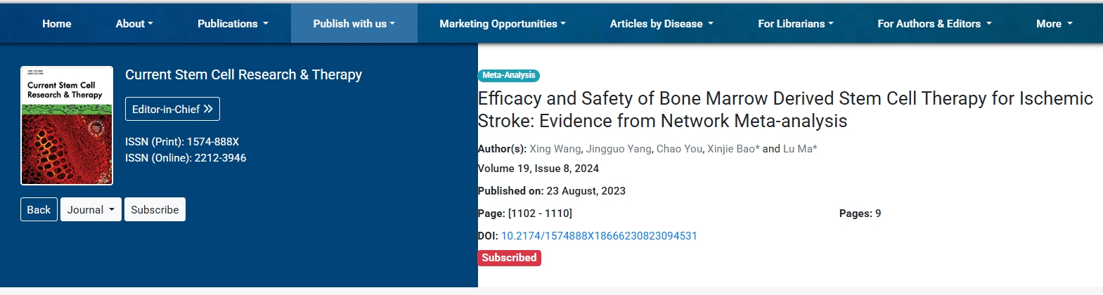 由于目前,有數種類(lèi)型的干細胞可用于治療中風(fēng)患者。然而,最佳干細胞類(lèi)型仍不清楚。為此,四川大學(xué)華西醫院神經(jīng)外科聯(lián)合北京協(xié)和醫院神經(jīng)外科開(kāi)了一項評估骨髓干細胞治療缺血性卒中的療效和安全性的臨床試驗。該項臨床試驗發(fā)表在期刊雜志《Current Stem Cell Research&Therapy》上。
