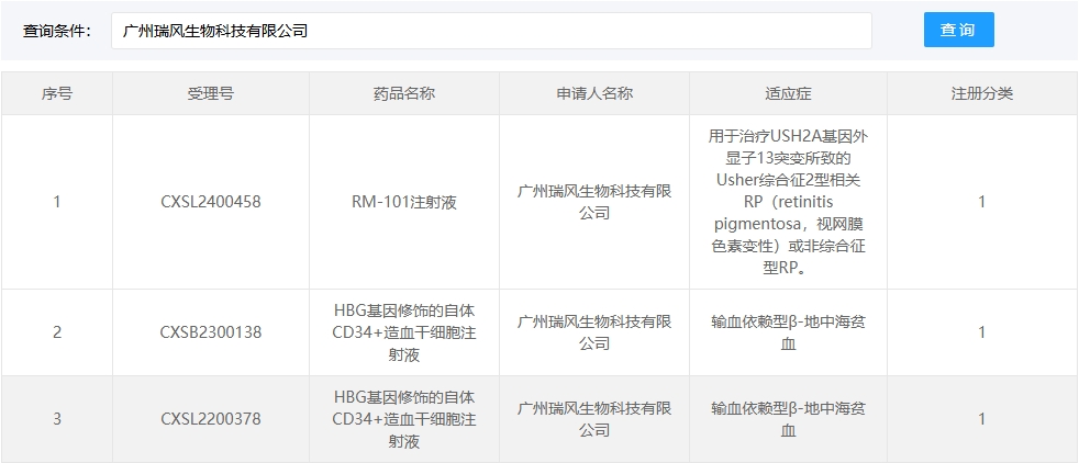 新增受理8:2025年4月15號,廣州瑞風(fēng)生物科技有限公司的HBG基因修飾的自體CD34+造血干細胞注射液的臨床試驗申請獲受理(受理號:CXSB2500048)。適應癥:輸血依賴(lài)型β-地中海貧血。