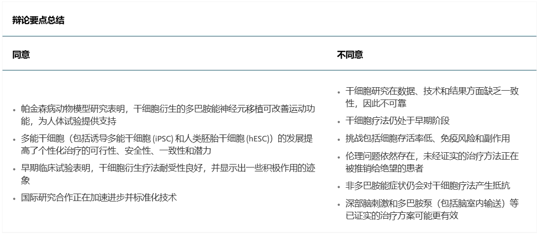 雙方觀(guān)點(diǎn)鮮明,論據充分,這場(chǎng)高水平的學(xué)術(shù)辯論,不僅揭示了干細胞療法在帕金森病治療道路上所面臨的曙光與挑戰并存,更以其深刻的思辨性,有力地重申了:盡管前路充滿(mǎn)荊棘,干細胞療法為帕金森病患者帶來(lái)革命性治愈希望的光芒。