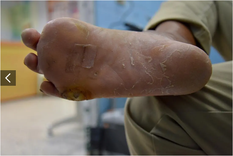 例如,腳上的水泡可能會(huì )潰爛,因為患者在早期感覺(jué)不到疼痛。隨著(zhù)感染的發(fā)展,可能會(huì )形成壞疽。