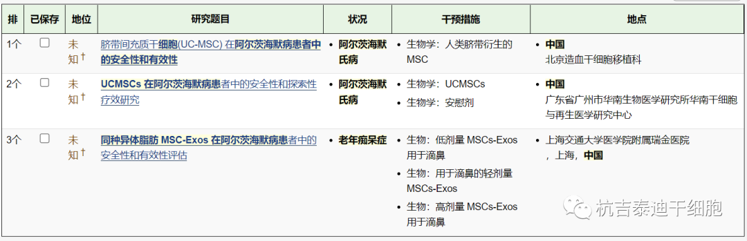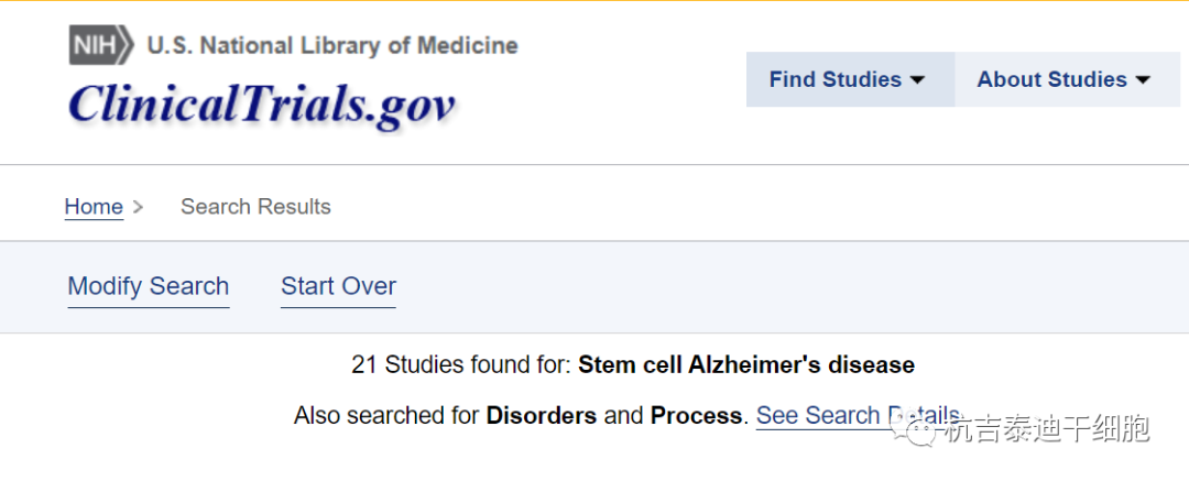 截止2023年4月,在美國國立衛生研究院的最大臨床試驗注冊庫clinicaltrials.gov網(wǎng)站上注冊的有關(guān)干細胞治療阿爾茨海默病的臨床研究項目有21項。