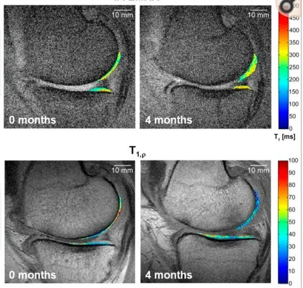 ▲如上圖,MRI顯示顏色越藍,代表軟骨質(zhì)量越好,說(shuō)明修復良好。另外,臨床試驗過(guò)程中沒(méi)有發(fā)現不良反應。