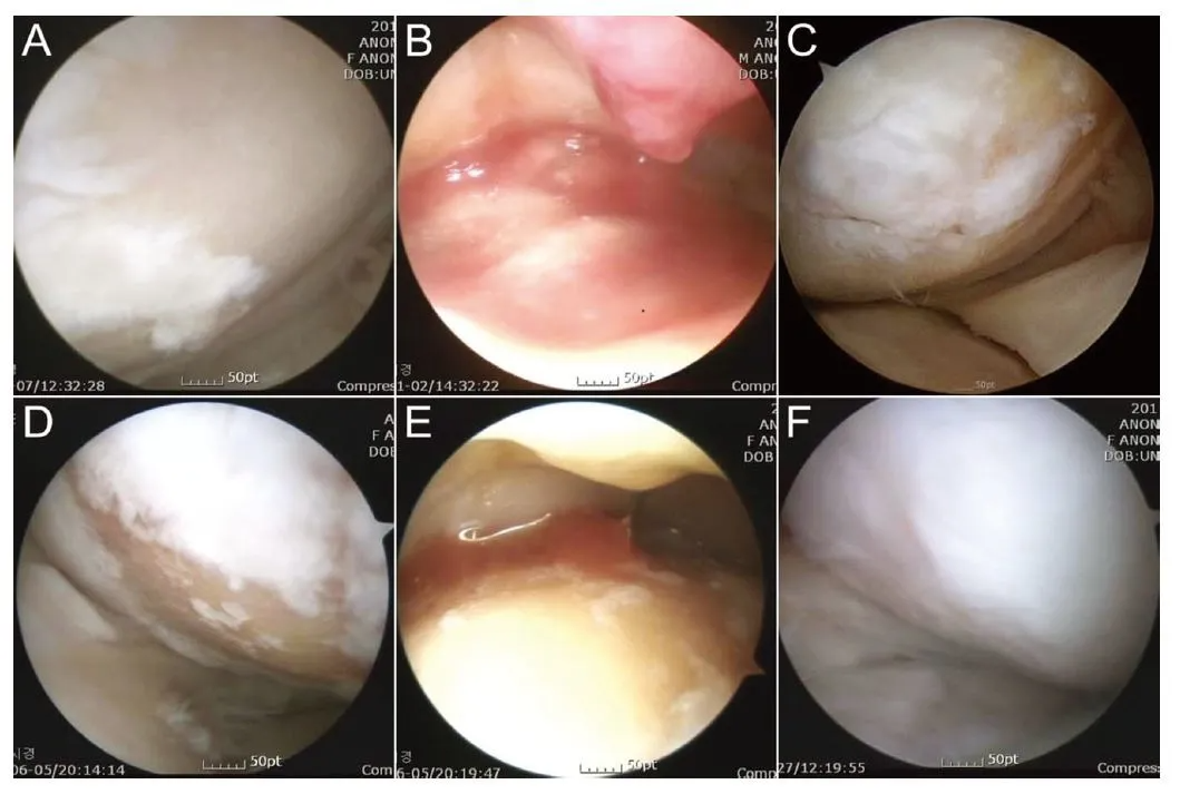 ▲圖中A-C為51歲男性膝關(guān)節鏡,D-F為54歲女性膝關(guān)節鏡。