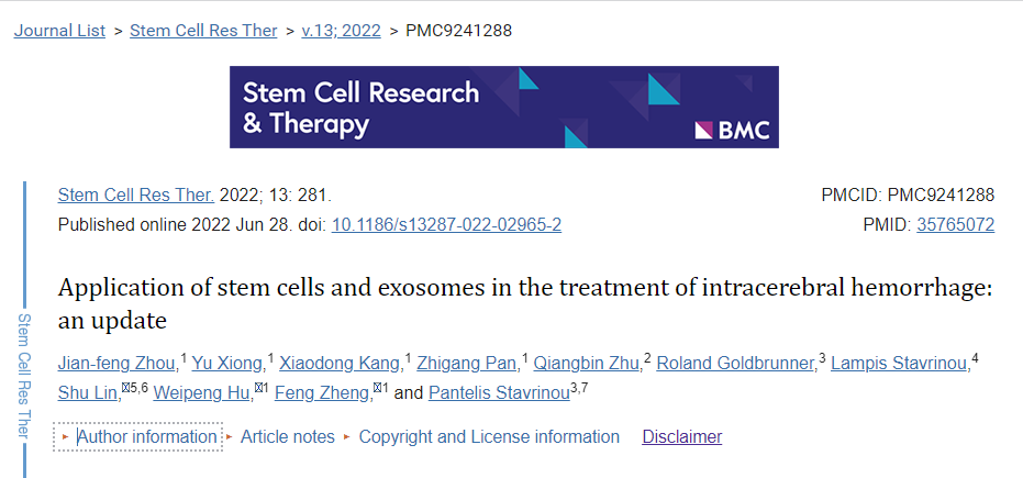 福建醫科大學(xué):干細胞和外泌體在治療腦出血中的臨床研究進(jìn)展