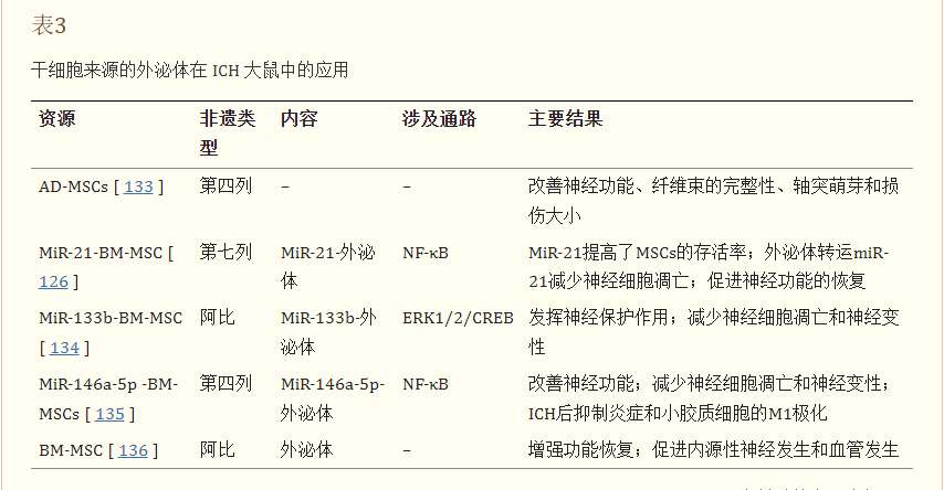 韓等。將骨髓來(lái)源的外泌體注射到ICH小鼠體內,發(fā)現血腫周?chē)男律芎统墒焐窠?jīng)元數量增加,ICH小鼠的神經(jīng)功能得到改善。