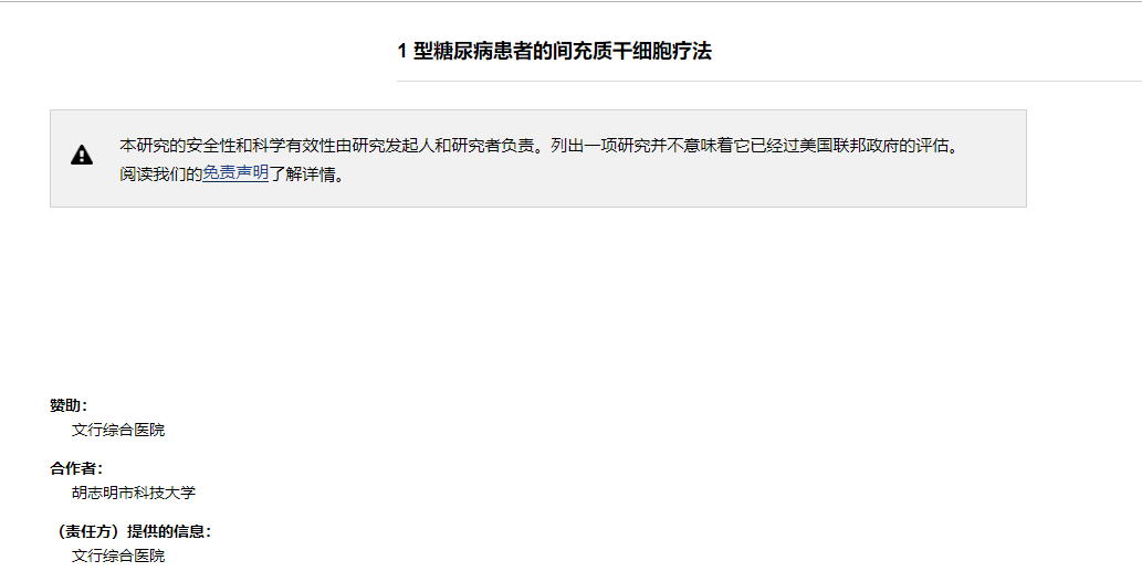 越南的一項臨床試驗也在研究臍帶組織干細胞如何治療這種疾病。