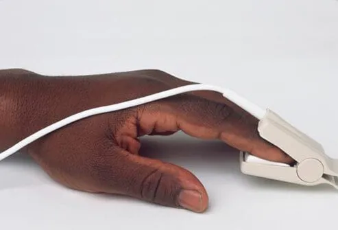 COPD診斷的一個(gè)重要部分是體格檢查,患者的呼吸史、吸煙史和COPD家族史。執行的第一個(gè)簡(jiǎn)單的非侵入性測試通常使用脈搏血氧儀(如本幻燈片的圖片所示)。血氧儀測量血液中的氧氣量(飽和度百分比)。這是一種測試有多少氧氣被輸送到離心臟最遠的身體部位(例如手臂和腿)的方法。脈搏血氧計放置在身體部位(手指、耳垂)上,使用光來(lái)測量氧氣水平。