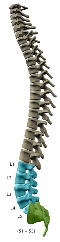骶骨(骶骨)位于腰椎下方、尾骨上方,稱(chēng)為尾骨。融合在一起的五塊骨頭組成了三角形的骶骨,這些骨頭編號為S-1至S-5。每個(gè)數字對應于脊髓該部分的神經(jīng)。