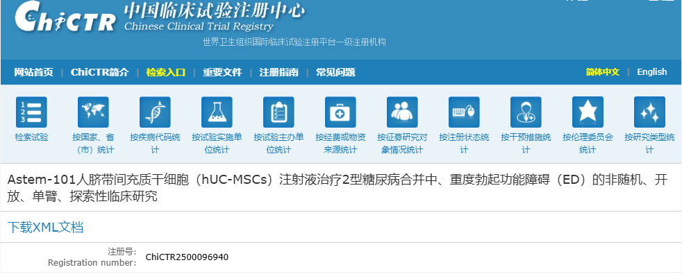 本研究已獲“中國臨床試驗注冊中心”(注冊號:ChiCTR2500096940)的預注冊。將嚴格按照臨床試驗規范(GCP)執行。若您對本研究有任何疑問(wèn),請進(jìn)行郵件咨詢(xún)。期待有“糖友”能夠加試驗,讓干細胞療法為您的健康與“幸?!碧砩弦环萘?!